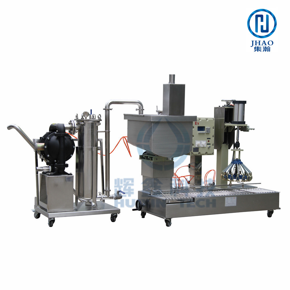 DCS30GYFB 防爆灌装机,个性设计,一人操作,可随操作工人习惯调整放桶位置都可灌装,辊轴输送;灌装高度可调,适合圆、方、扁及各种罐型及口径液体灌装,中转槽恒压易清洗,选择式出料装置,满足客户一机多用,多品种灌装,灵活移动,二速灌装“快&准”,稳定性好,减少损耗,节省成本、减轻工人操作压力等。